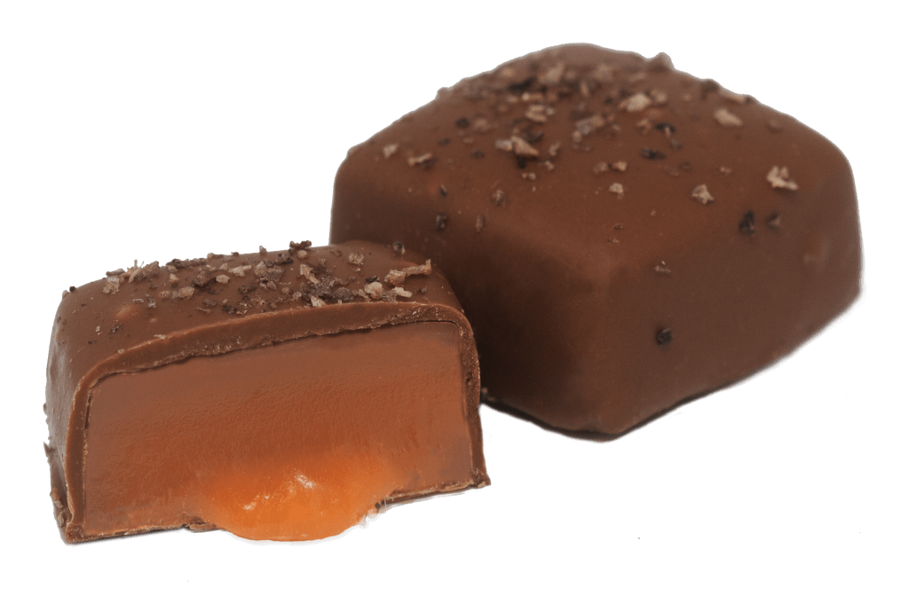 Honey Caramel – Trading some of the sugar for honey is what makes our Honey Caramels special. The honey gives the caramel a softer texture and a longer ‘pull’, which provides a delightful contrast with the chocolate shell. Honey Caramels also have available inclusions and toppings like Traditional Caramels.