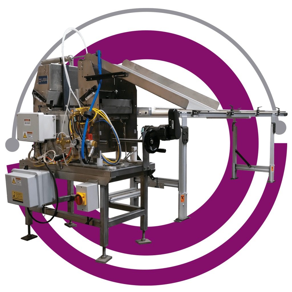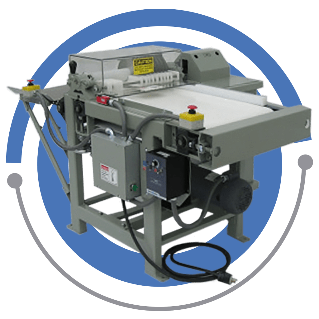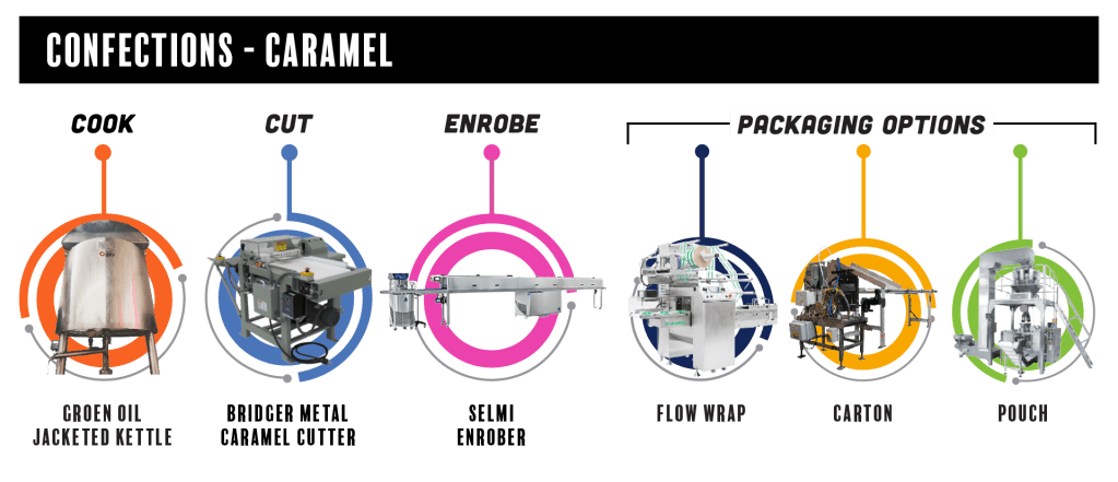 Caramel slabs are cut into perfect squares prior to enrobing. Cutting dies can be purchased to create different sizes and shapes.